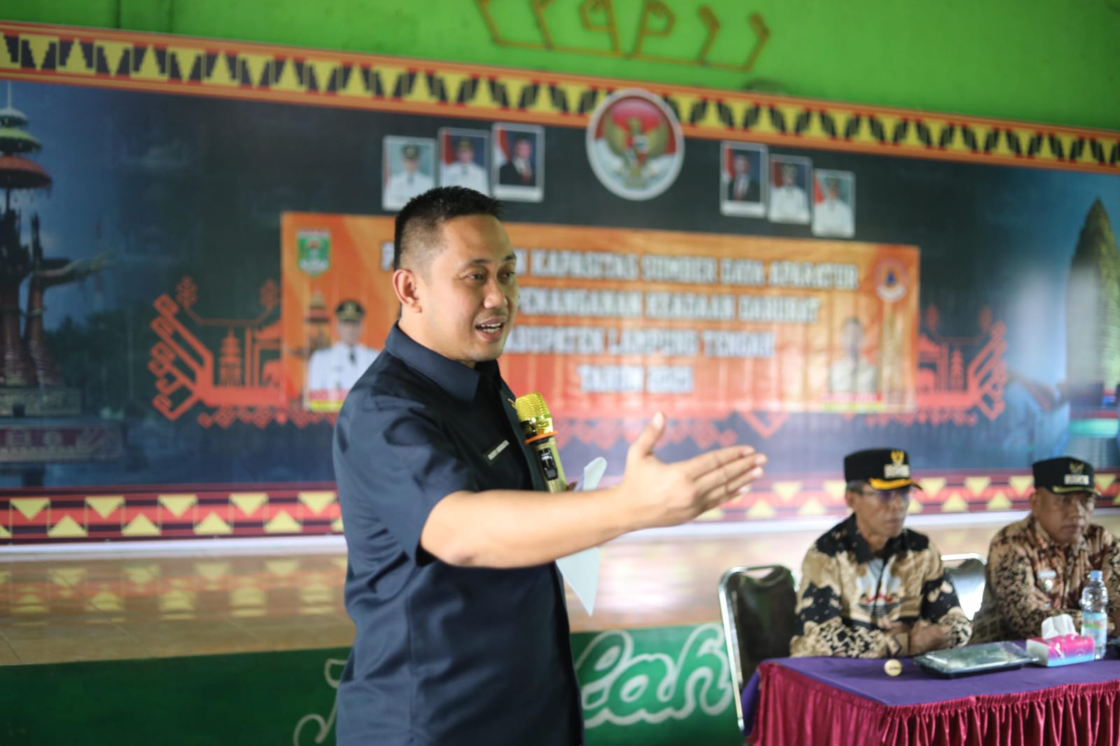 Dalam sambutannya, Bapak Ricky Augusta, SH., MH menyampaikan bahwa pelatihan ini bertujuan untuk membangun kesamaan pemahaman serta persepsi di kalangan aparatur tentang kebijakan dan sistem manajemen penanganan darurat, serta menegaskan bahwa peningkatan kapasitas aparatur merupakan langkah strategis mengingat Lampung Tengah memiliki kerentanan terhadap berbagai jenis bencana seperti banjir, angin puting beliung, kebakaran permukiman, serta tanah longsor. Melalui pelatihan ini, diharapkan aparatur di tingkat kabupaten hingga kecamatan dapat lebih sigap, profesional, dan terkoordinasi ketika terjadi situasi darurat.