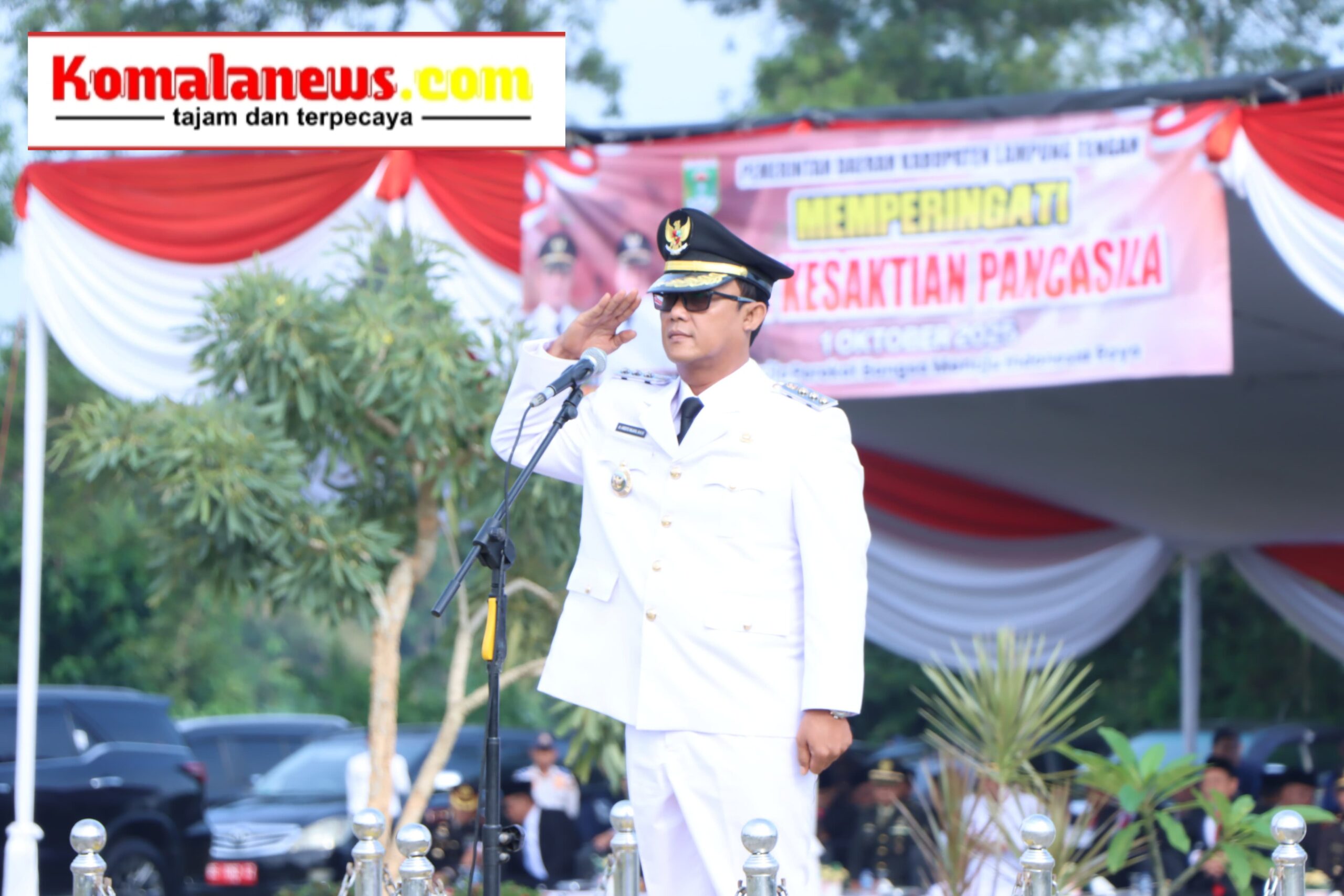 LAMPUNG TENGAH – (KomalaNews.com) – Bupati Lampung Tengah, Ardito Wijaya, bertindak sebagai Inspektur Upacara pada peringatan Hari Kesaktian Pancasila yang dilaksanakan di Lapangan Merdeka Gunung Sugih, Senin (1/10/2025).