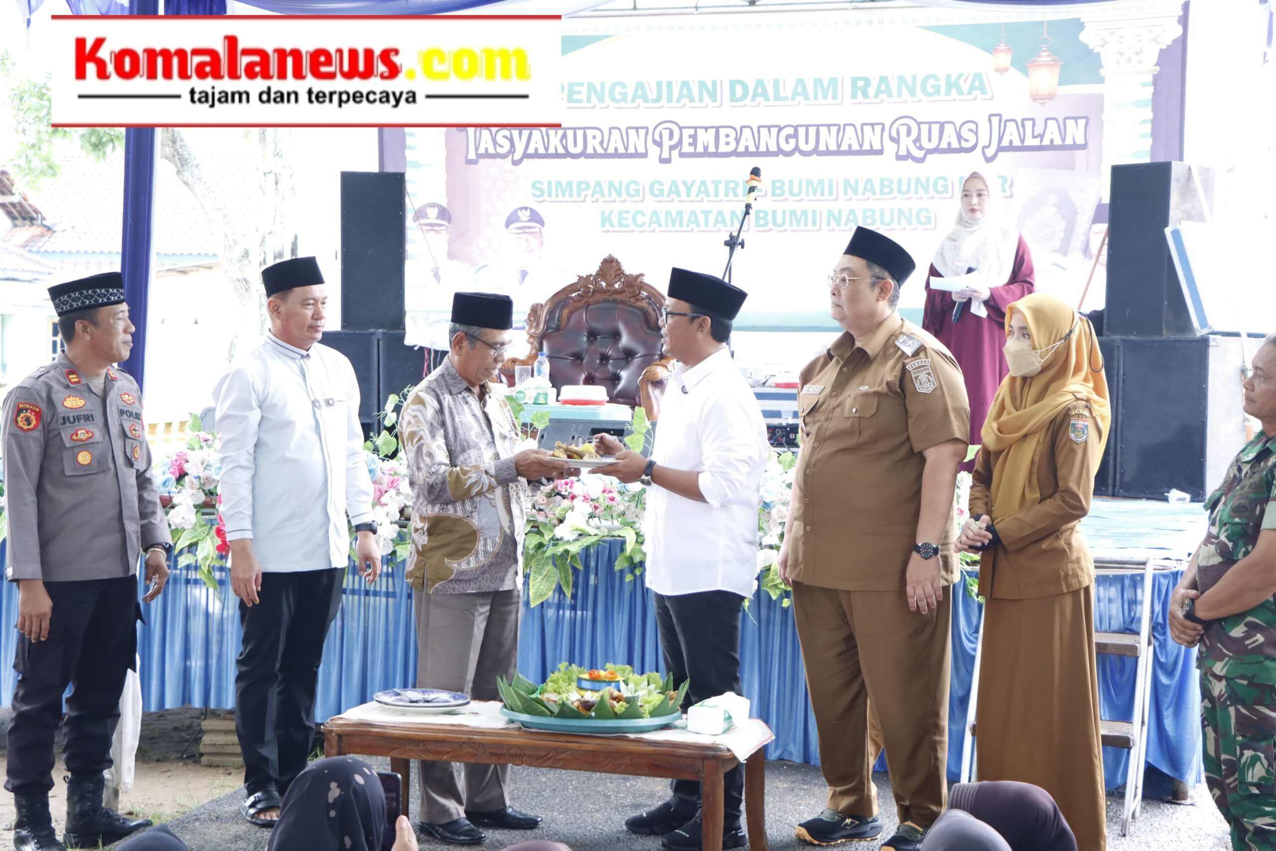 Bupati Lampung Tengah Ardito Wijaya Menghadiri Kegiatan Pengajian Dan Tasyakuran Dalam Rangka Dimulainya Pembangunan Ruas Jalan Simpang Gayatri – Bumi Nabung Ilir.