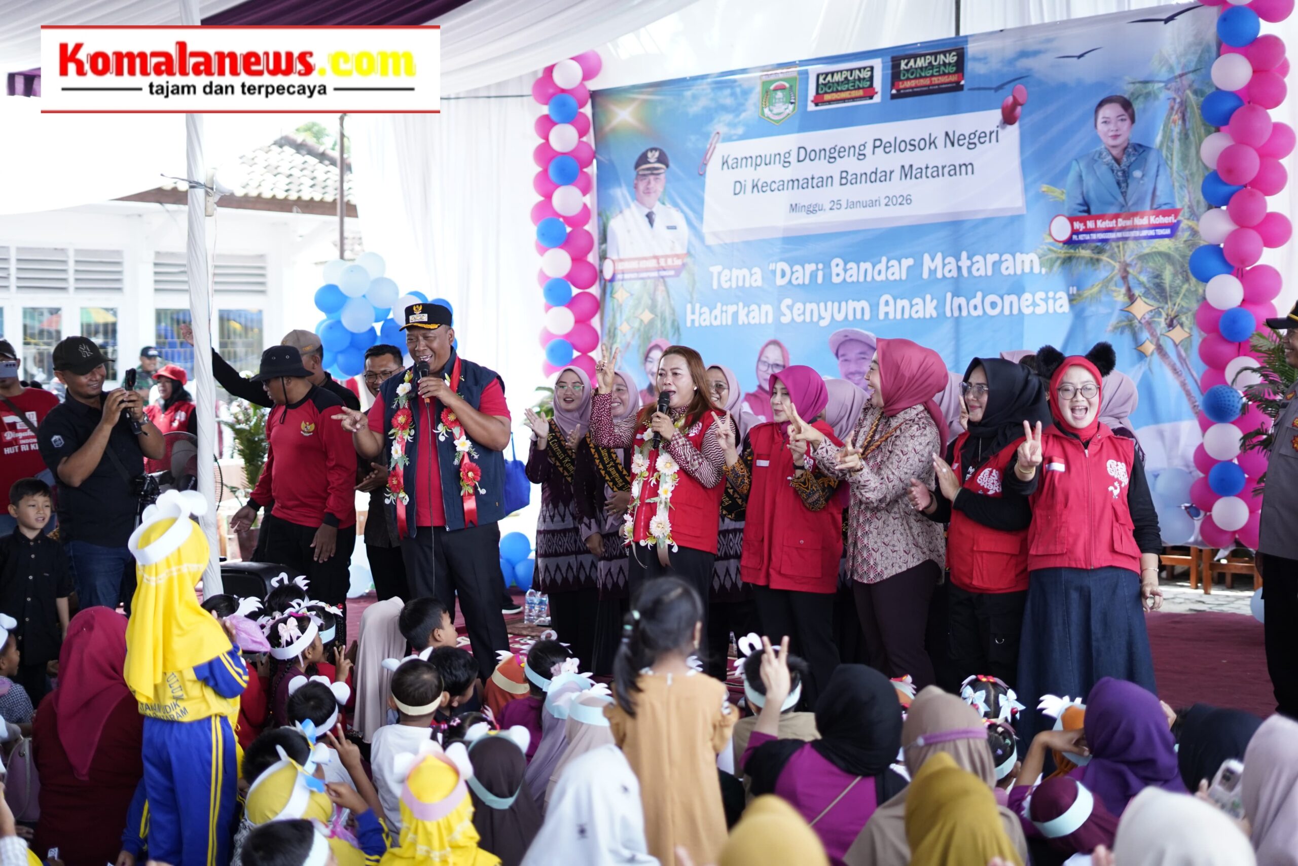 LAMPUNG TENGAH – (KomalaNews.com) – Pelaksana Tugas (Plt) Bupati Kabupaten Lampung Tengah I Komang Koheri didampingi Pelaksana Tugas (Plt) Ketua TP PKK yang juga Plt Bunda Literasi Kabupaten Lampung Tengah Ni Ketut Dewi Nadi Komang Koheri secara resmi membuka kegiatan Kampung Dongeng Pelosok Negeri yang berlangsung di Kecamatan Bandar Mataram, Minggu (25/01/2026).