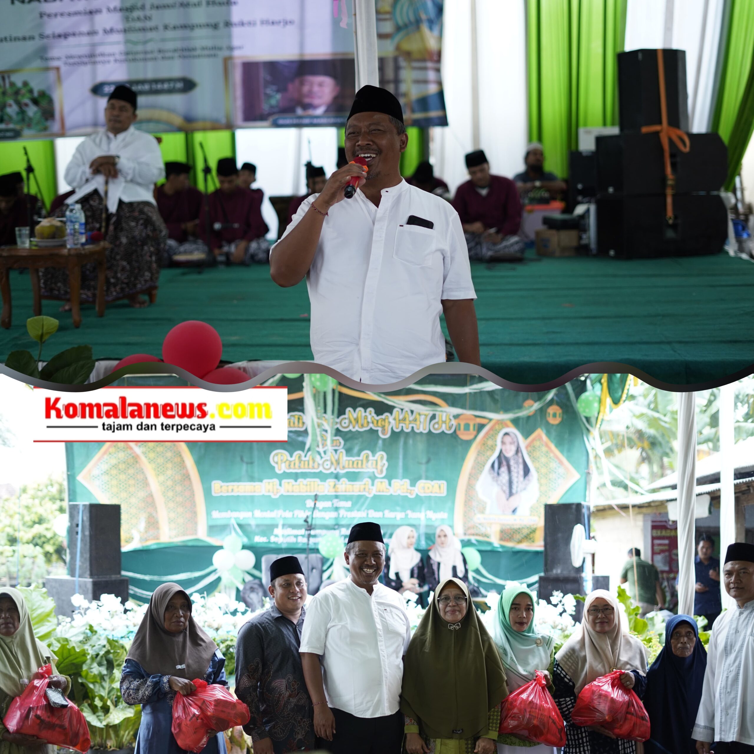 LAMPUNG TENGAH – (KomalaNews.com) – Kampung Rukti Endah, Kecamatan Seputih Raman, menggelar peringatan Isra Mi’raj Nabi Muhammad SAW 1447 Hijriah yang dirangkaikan dengan kegiatan Peduli Mualaf, Minggu (11/1/2026). Kegiatan keagamaan tersebut berlangsung khidmat di Masjid Nurul Anwar, Dusun Rukti Endah, dan diikuti oleh masyarakat dengan penuh antusias.