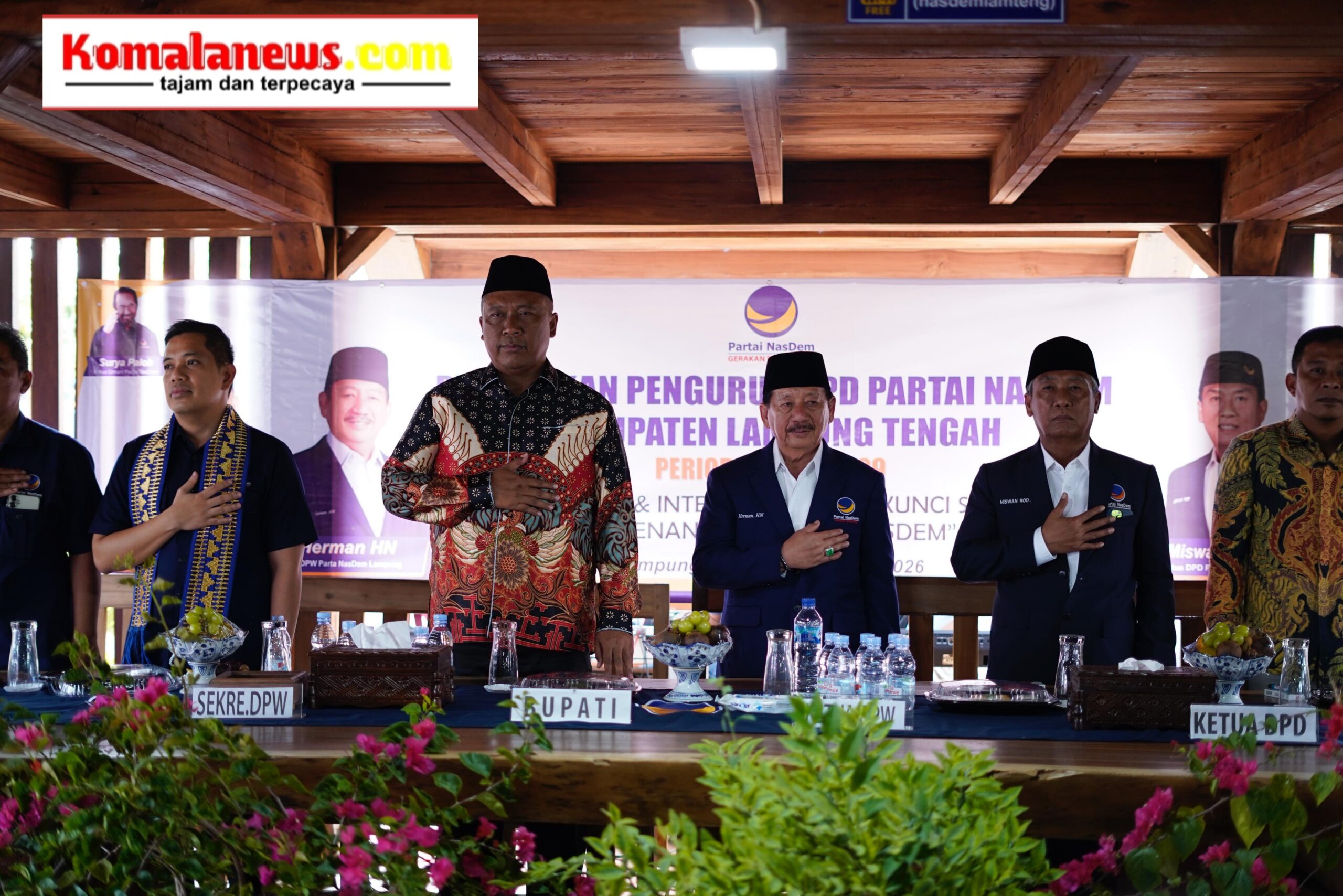 LAMPUNG TENGAH – (KomalaNews.com) – Pelaksana Tugas (Plt.) Bupati Lampung Tengah, I Komang Koheri, S.E., M.Sos., menghadiri acara pelantikan pengurus Dewan Pimpinan Daerah (DPD) Partai NasDem Kabupaten Lampung Tengah, yang dilaksanakan pada Sabtu (17/01/2026). Kegiatan tersebut berlangsung di DPD Partai Nasdem Lampung Tengah