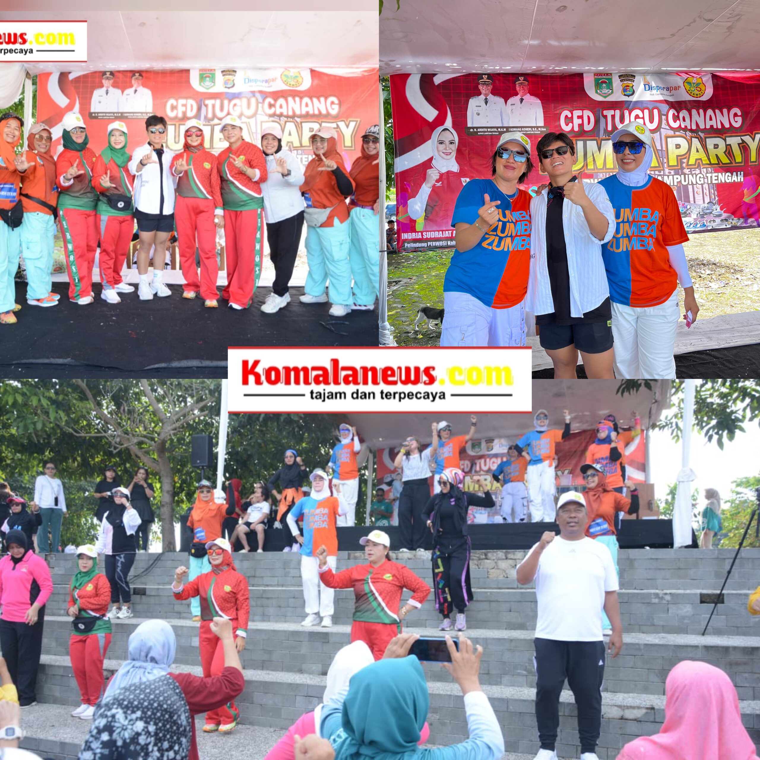 GUNUNG SUGIH – (KomalaNews.com) – Persatuan Wanita Olahraga Seluruh Indonesia (PERWOSI) Kabupaten Lampung Tengah menggelar kegiatan Zumba Party yang berlangsung meriah di Taman Tugu Canang Kecamatan Gunung Sugih, pada Minggu (02/11/2025).