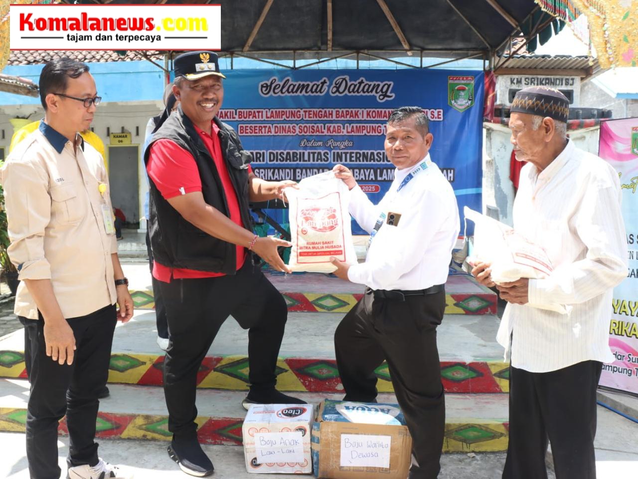 LAMPUNG TENGAH – (KomalaNews.com) – Wakil Bupati Lampung Tengah, I Komang Koheri, S.E., M.Sos, menghadiri kegiatan Bakti Sosial bagi penyandang disabilitas mental dalam rangka peringatan Hari Disabilitas Internasional (HDI) 2025. Acara tersebut berlangsung di Yayasan Srikandi, Kecamatan Bandar Surabaya, pada Jumat (05/12/2025).